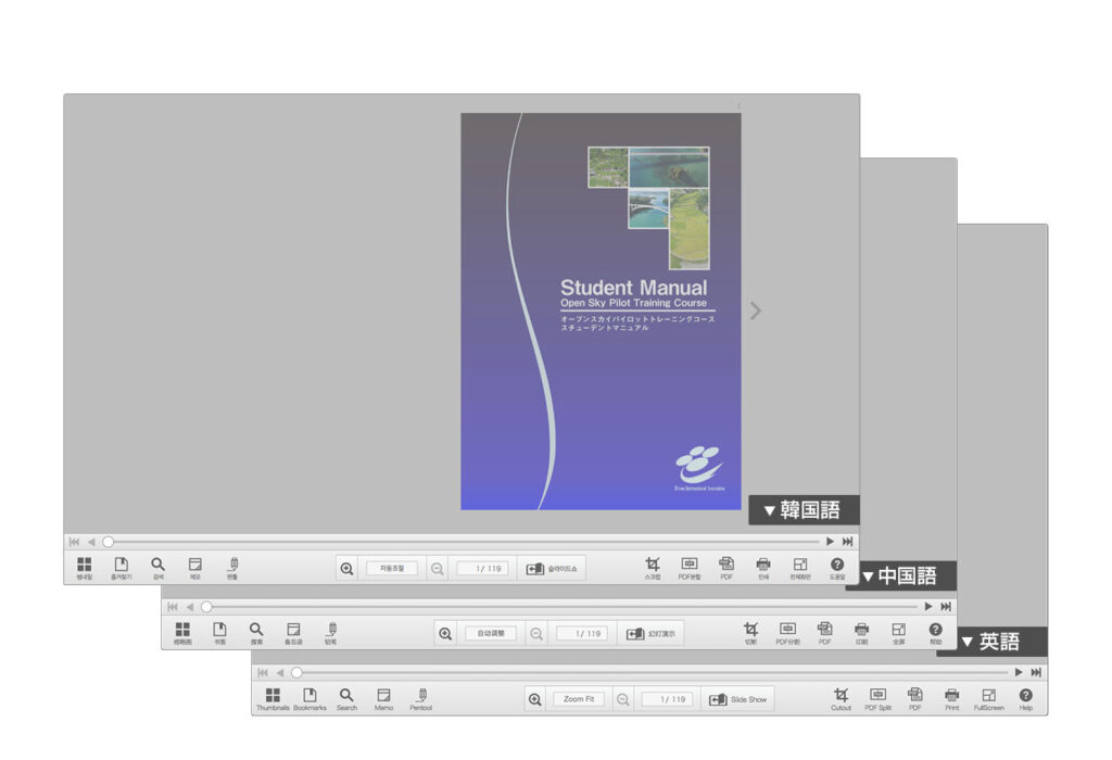 電子ブックのビューア部分の見た目を色やボタン配置の異なる3種類のスキンの中から選択いただけます。