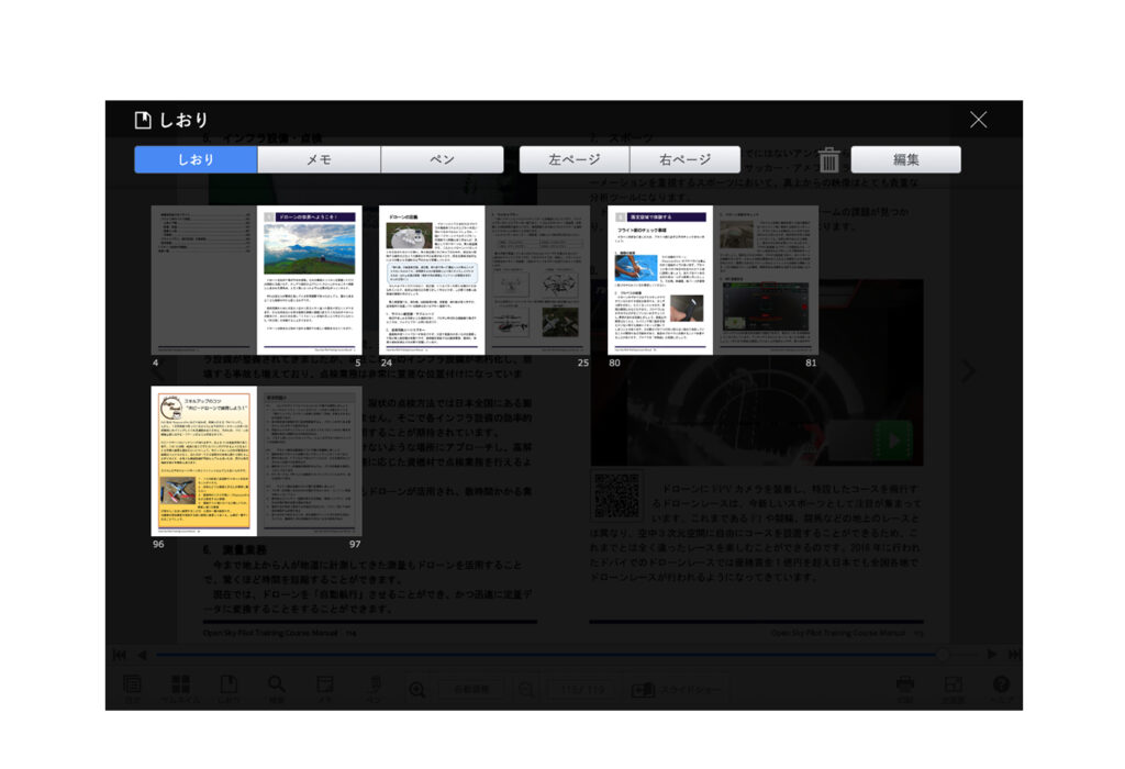ページを縮小したサムネイルを一覧で表示し、サムネイルから該当ページへ移動できるようになります。